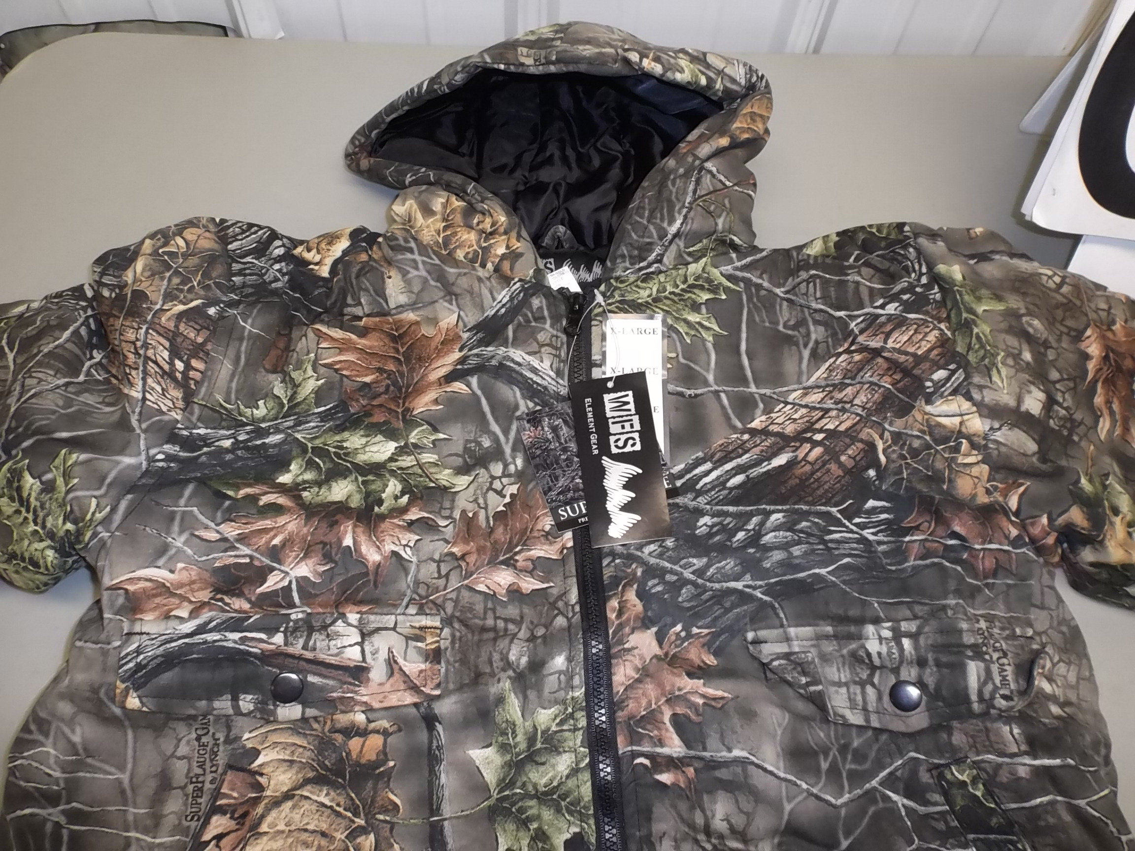New, with tags. Camo jacket. Looks very warm. Size XL.