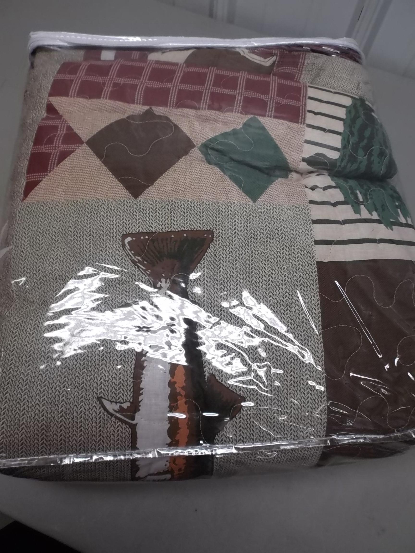 Full/Queen quilt. New, very nice. Outdoors pattern.