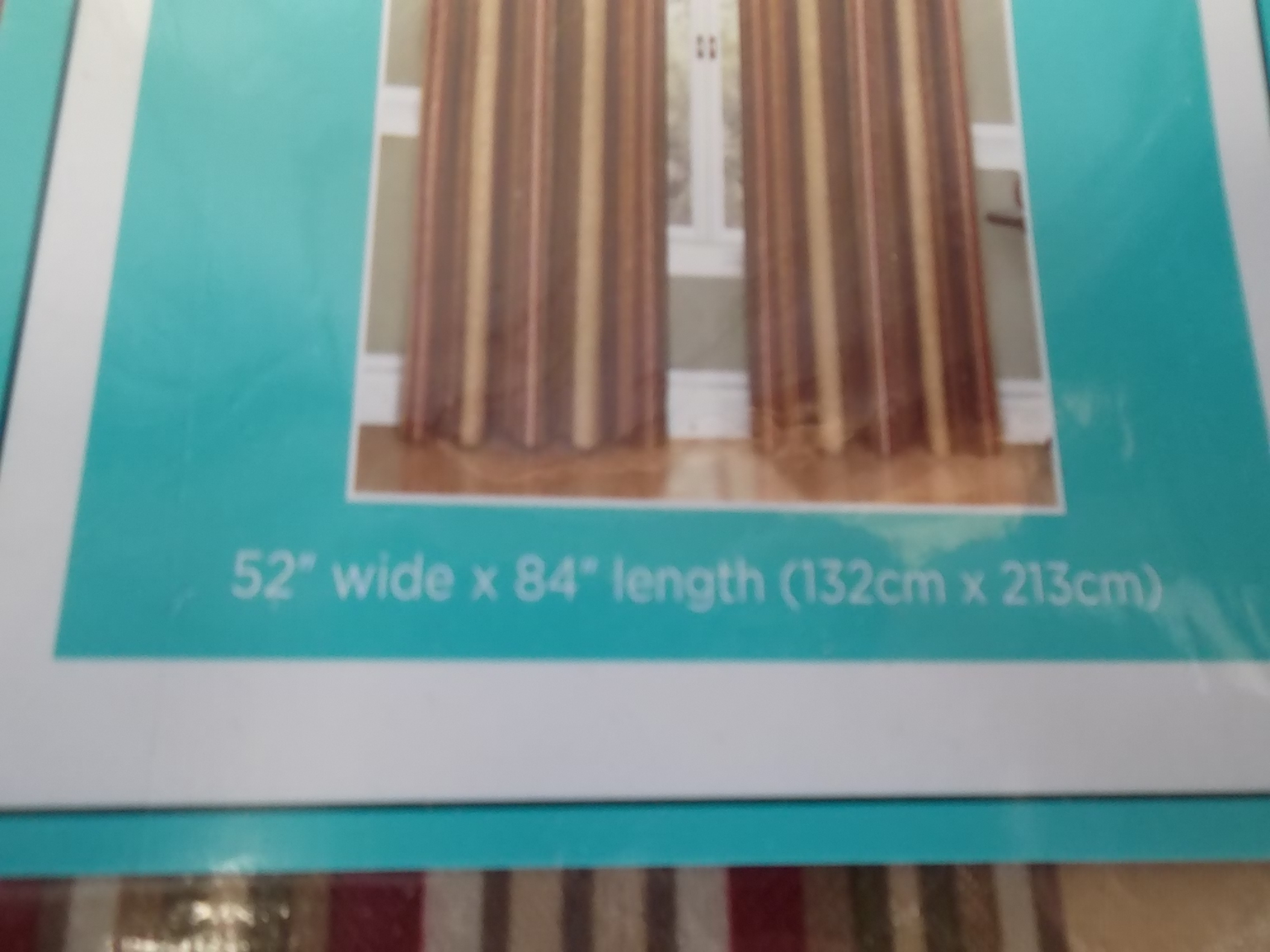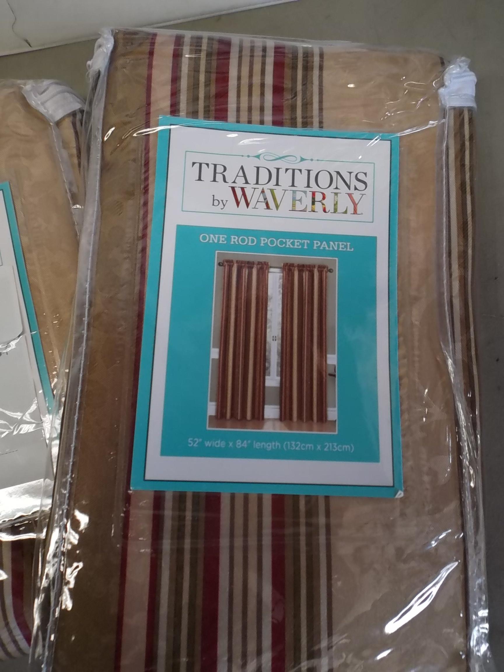 Set of 2 curtain shades, one rod pocket panel. Size 52" wide x 84" length. New.