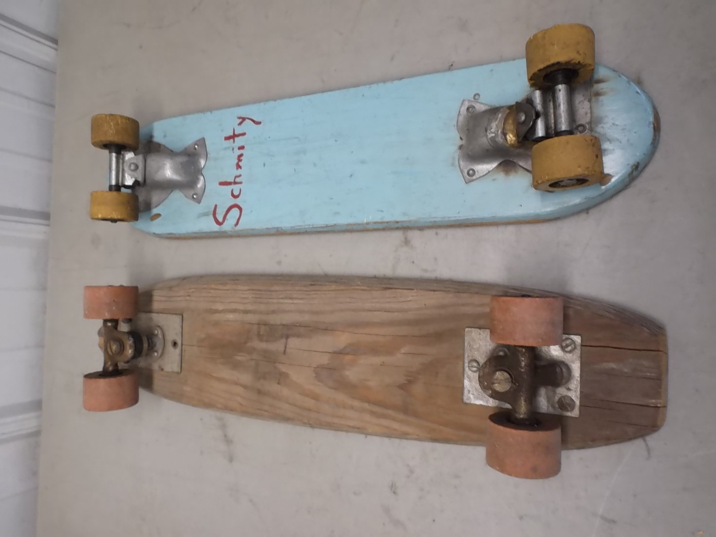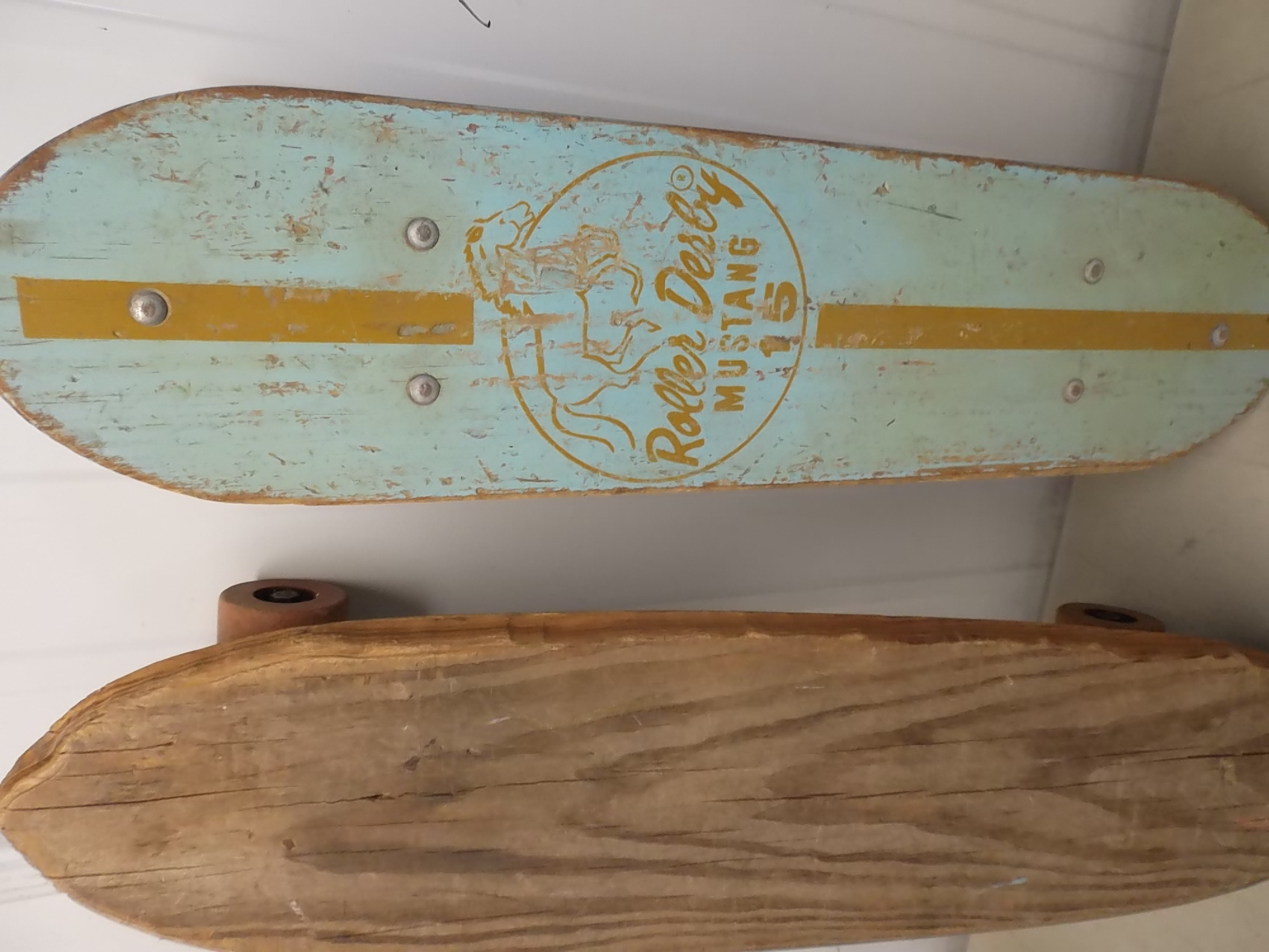 Blue one has roller derby 15 on it. Nice old vintage skateboards.