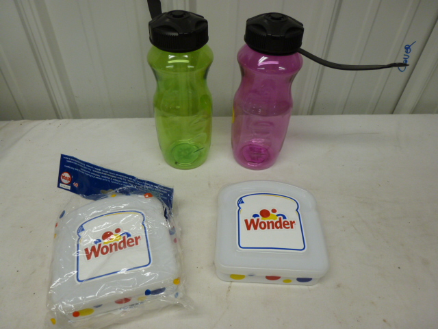 Wonder sandwich containers, two new water jugs, appear to be new,