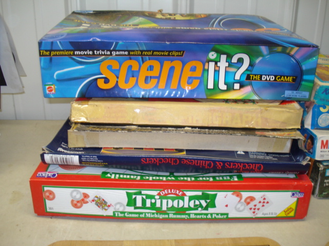 This lot includes a lot of the classic board games. Includes: Tripoley, Scene It, Clue, checkers, Connect Four, and many more! All have been used.